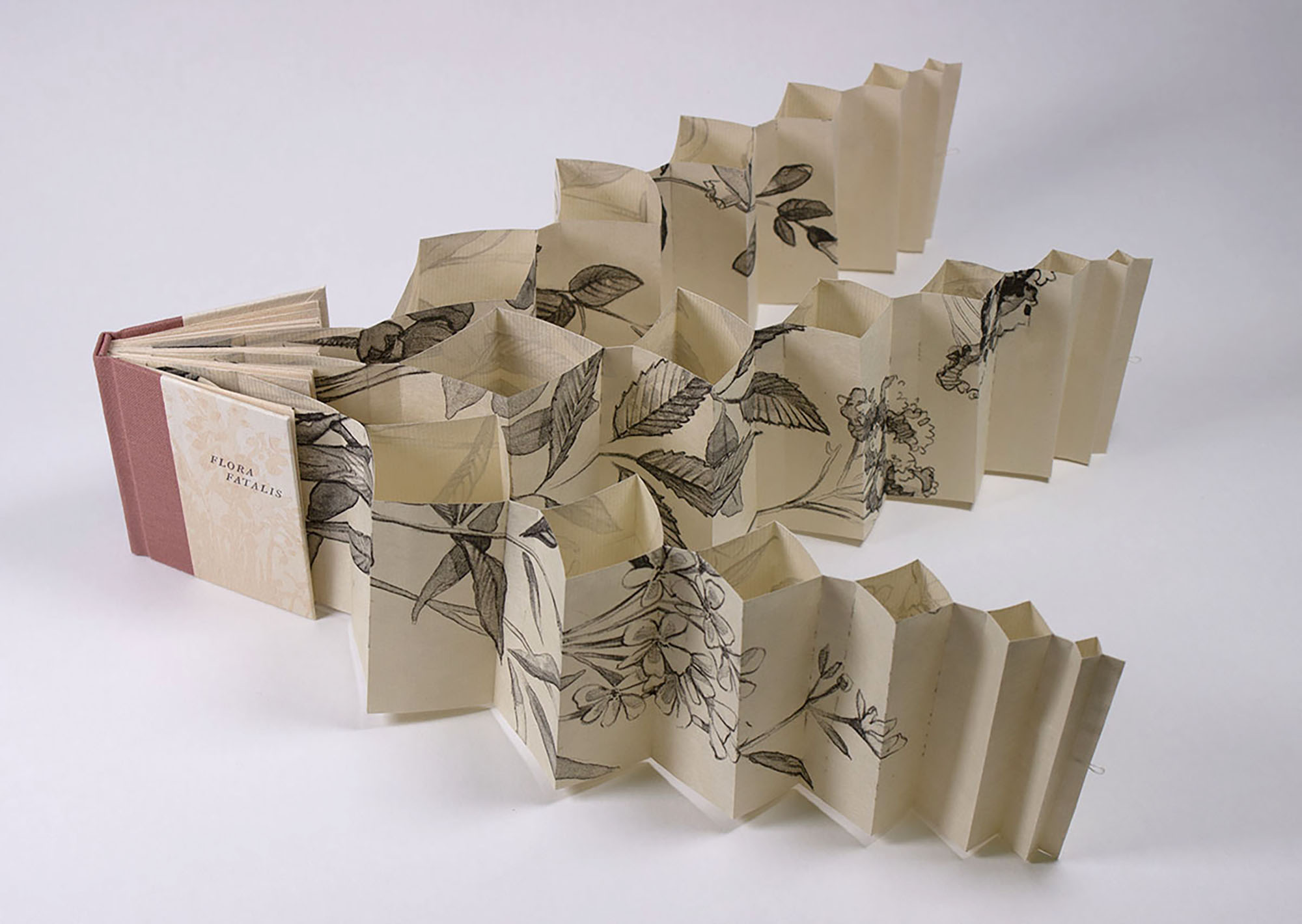 In her books she explores form in unexpected ways, quite literally, her books expand outward into the personal space of the viewer and challenge preconceived notions of what a book is and can be. This interactive work revolves heavily around research of the subjects she depicts and her efforts to educate viewers. Whether it’s about overlooked wildflowers and weeds or the science behind why the sky is blue, Kimberly draws upon her experiences and memories as avenues of exploration in all her work.